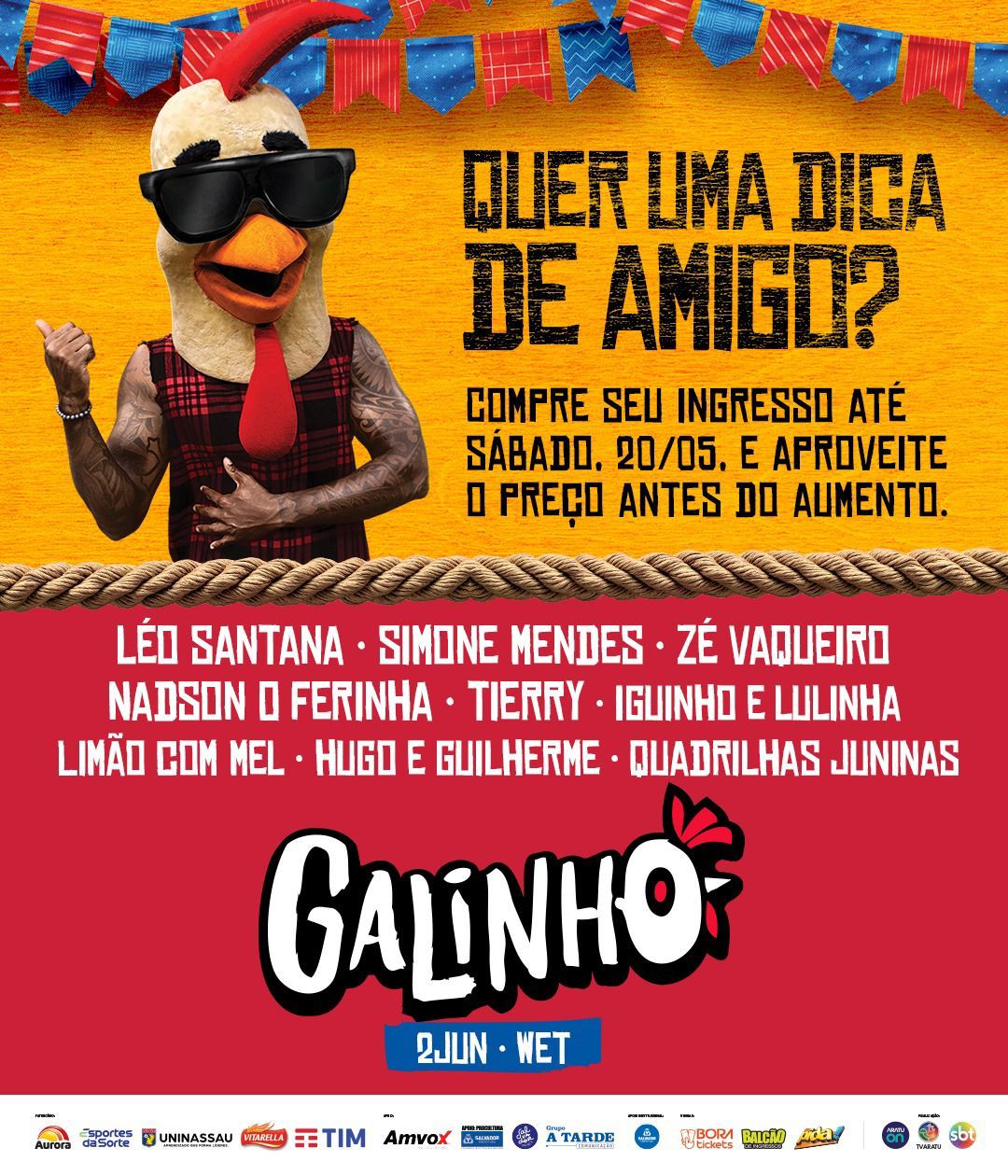 E após anunciar as atrações, o Galinho terá virada de lote no dia 21 de maio, oferecendo ao público a última oportunidade de o público comprar os ingressos com preços promocionais.