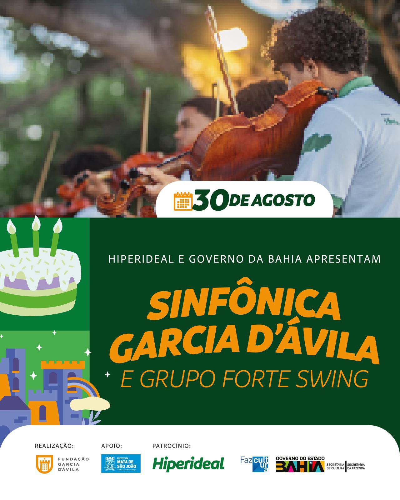 O projeto Sinfônica Garcia D’Ávila é realizado pela Fundação Garcia D’Ávila com o patrocínio do Hiperideal e do Governo da Bahia, através do Fazcultura, Secretaria de Cultura e Secretaria da Fazenda.