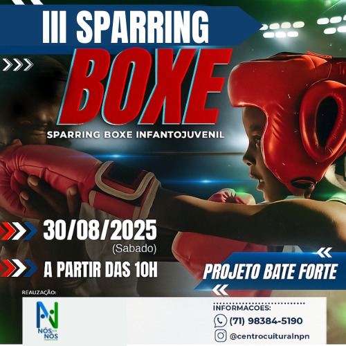 O SPARRING BOXE irá acontecer no bairro sede do projeto no Bate Coração/Paripe e tem como objetivo iniciar os jovens atletas, trazendo-lhes experiência, assim como levar para outros jovens incentivo e estímulo a prática do boxe, que é o esporte aqui utilizado como ferramenta para inclusão social, desenvolvimento de valores morais e virtudes de um bom cidadão. O evento será aberto ao público e contará com a presença de vários atletas e ex-atletas da modalidade, assim como admiradores da nobre arte.