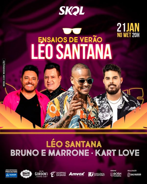 COMUNICADO A Salvador Produções, empresa responsável pela realização do evento Ensaio de Verão de Léo Santana que aconteceria nesta sexta feira, dia 21 de janeiro no WET, com Shows de Léo Santana, Bruno e Marrone e Kart Love, informa que devido ao pronunciamento do Excelentíssimo governador do estado da Bahia Rui Costa na manhã desta... Continuar Lendo →