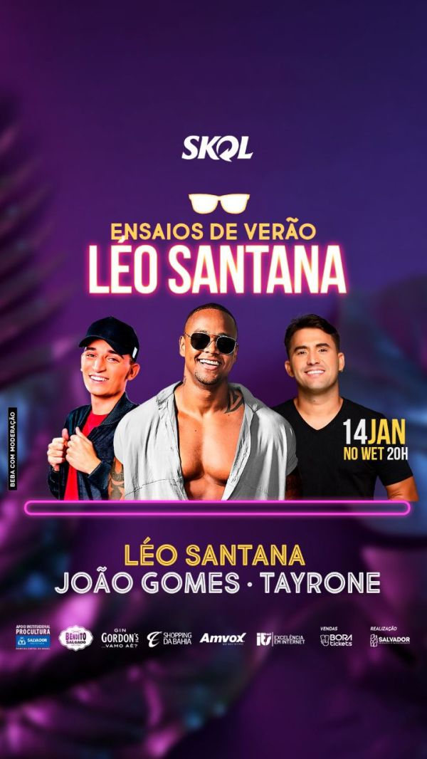 JOÃO GOMES FAZ SHOW PELA 1A VEZ EM SALVADOR NO ENSAIO DE VERÃO COM LÉO SANTANA E TAYRONE NESTA SEXTA, 14 DE JANEIRO NO WET