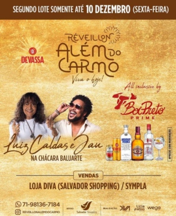 O Réveillon Além do Carmo vai ter virada de lote no valor dos ingressos nessa semana. A festa, que vai acontecer na Chácara Baluarte, no Santo Antônio Além do Carmo, terá como atrações Jau e Luiz Caldas. O evento oferece duas opções de espaço: o All Inclusive, que terá cardápio e serviço assinados pelo Boi... Continuar Lendo →