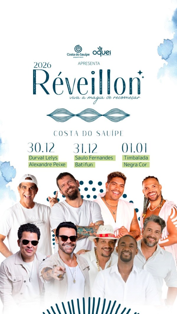 Durval Lelys, Saulo Fernandes, Timbalada, Negra Cor, Batifun e Alexandre Peixe comandam a chegada de 2026 no maior complexo turístico do BrasilO Réveillon Costa do Sauípe será palco de uma celebração especial para marcar a chegada de 2026 com tudo o que a Bahia tem de mais vibrante: música, alegria, gastronomia de alta qualidade e... Continuar Lendo →