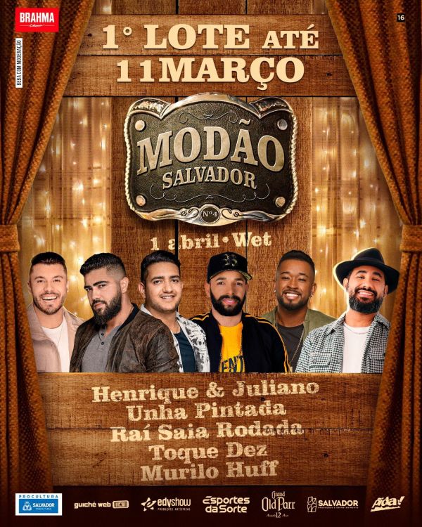 A festa reunirá grandes nomes do cenário musical no dia 1º de abril, no WET Salvador_A festa Só Modão – que já está em sua 4ª edição, vai reunir grandes nomes do cenário do sertanejo e da sofrência, em uma noite com muita música e paquera. Depois de confirmar a dupla Henrique & Juliano, os... Continuar Lendo →