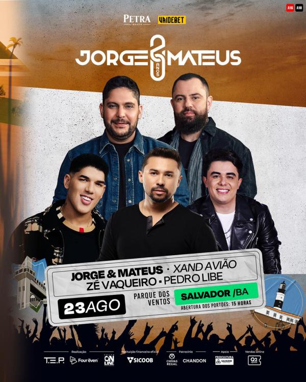 TURNÊ JORGE & MATEUS 20 ANOS EM SALVADOR CONFIRMA LOCAL E ATRAÇÕES